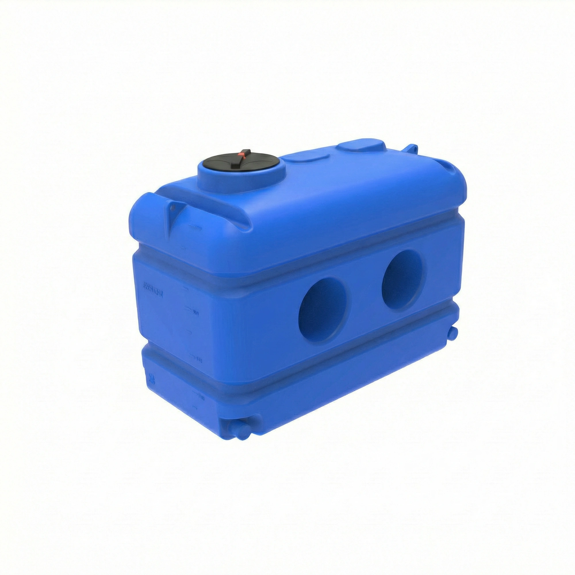 Емкость может поставляться как без патрубков, так и с цельнолитыми патрубками D 100 мм, позволяющими сообщать между собой соседние емкости с помощью резиновых манжет. При этом отсутствуют выступающие части и трубопроводы при соединении резервуаров.