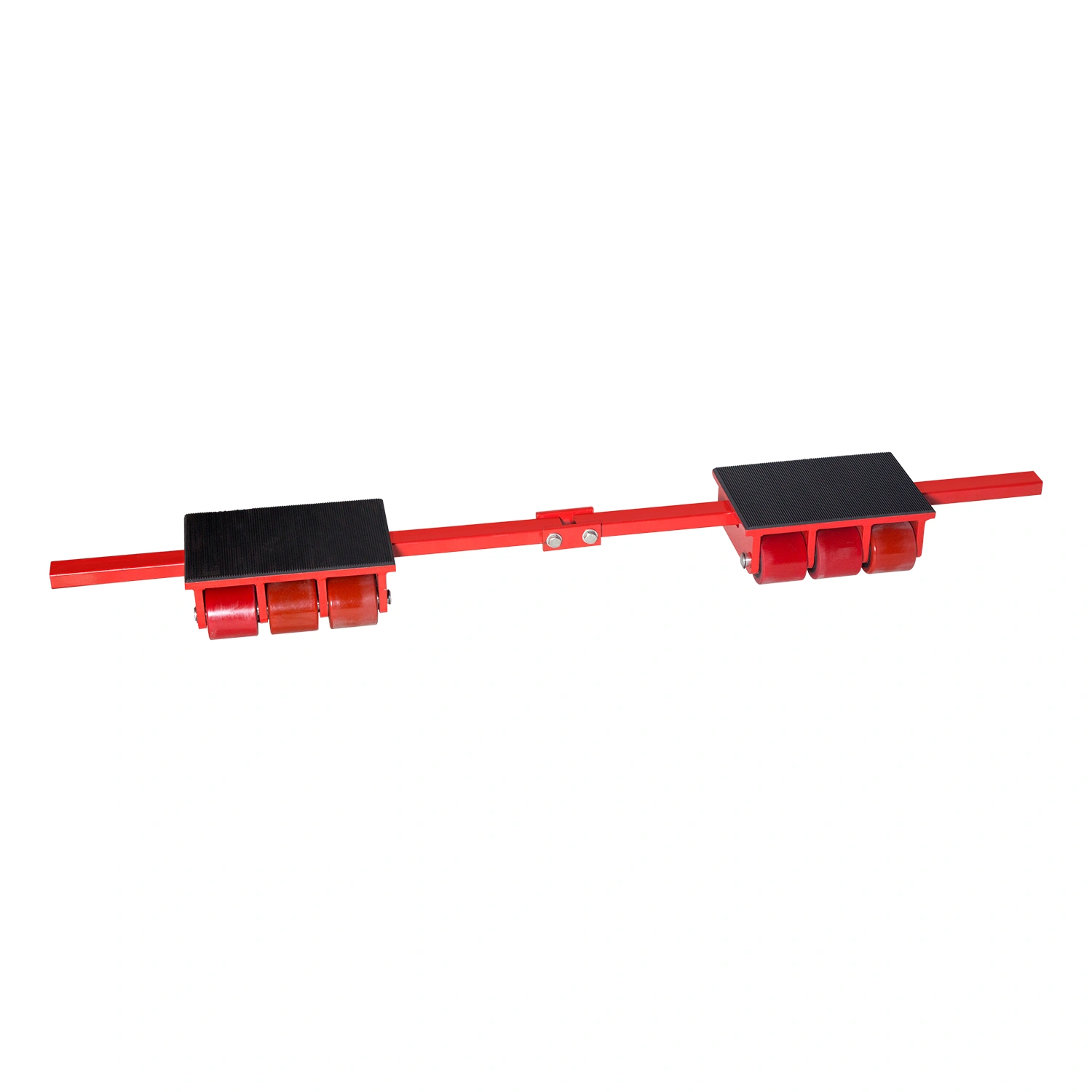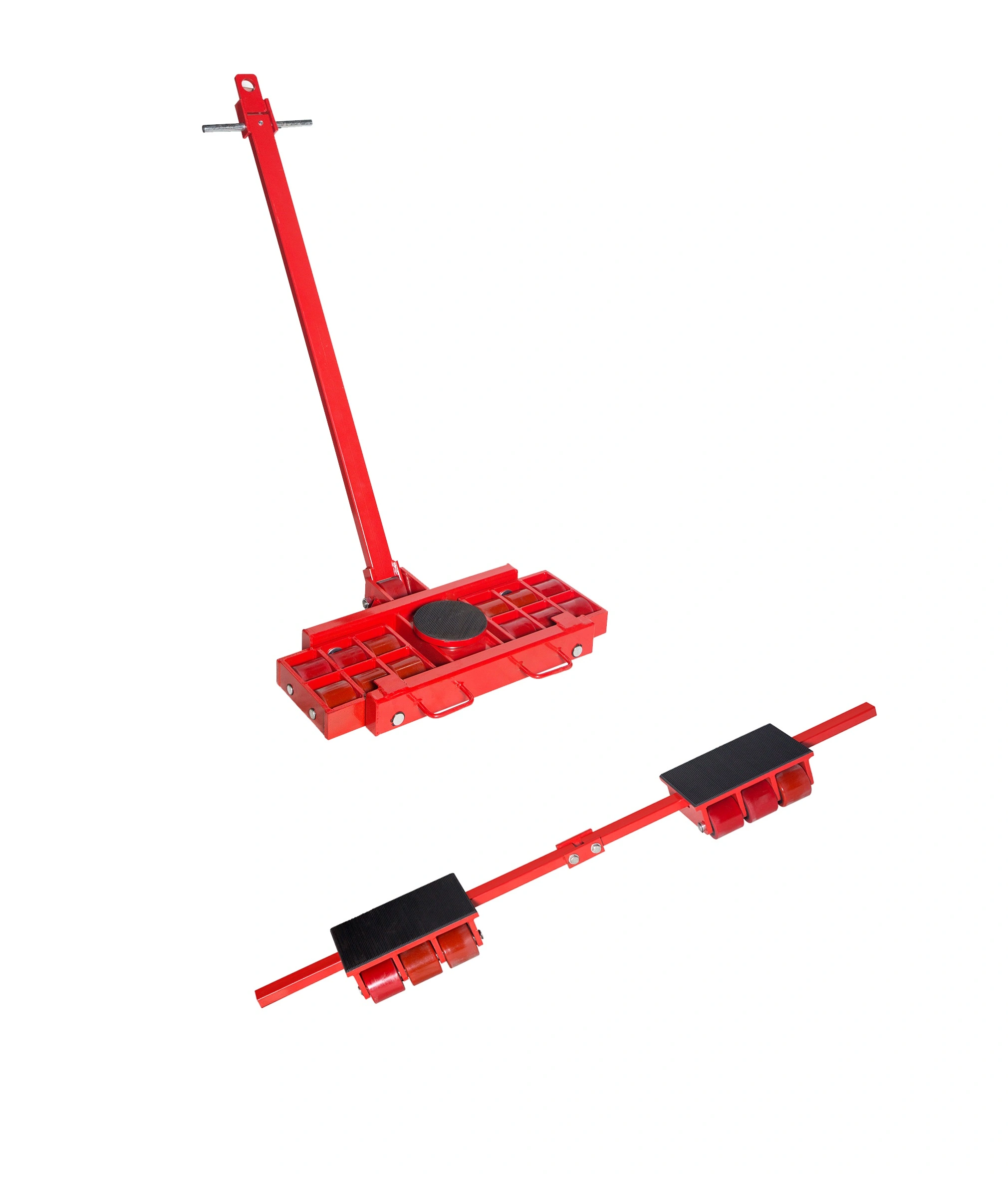 Комплект такелажных платформ X12 и Y12 рассчитан на перемещение различных грузов и оборудования весом до 24т. Система для перемещения груза X12 и Y12 представляют собой стальную комплексную конструкцию, состоящую из двух частей: 1. Ведущая опора X12. Снабжена ручкой для перемещения опоры и поворотным диском для маневрирования. 2. Ведомая опора Y12. состоит из двух неуправляемых такелажных платформ. Имеет регулируемую штангу, по её длине, в зависимости от габаритов перевозимого груза, можно сближать и удалять друг от друга роликовые платформы. В зависимости от веса груза, перемещение может осуществляться такелажными системами с одним или двумя ведущими катками. Два ведущих катка применяют для балансирования и безопасного перемещения больших по размерам и сверхтяжелых грузов.Полиуритановые ролики 80х70мм. Количество роликов 24 шт. (12 на управляемой платформе и по 6 роликов на каждой неуправляемой платформе), материал колес полиуретан, габаритные размеры опоры X-750x450x110мм., габаритные размеры опоры Y-256x450x110мм., общий вес комплекта 100кг.