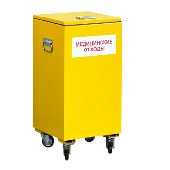Контейнер для сбора медицинских отходов КМ – это герметичный бак с крышкой и колесами, предназначен для использования в медицинских учреждениях, как внутри помещений так и на улице.