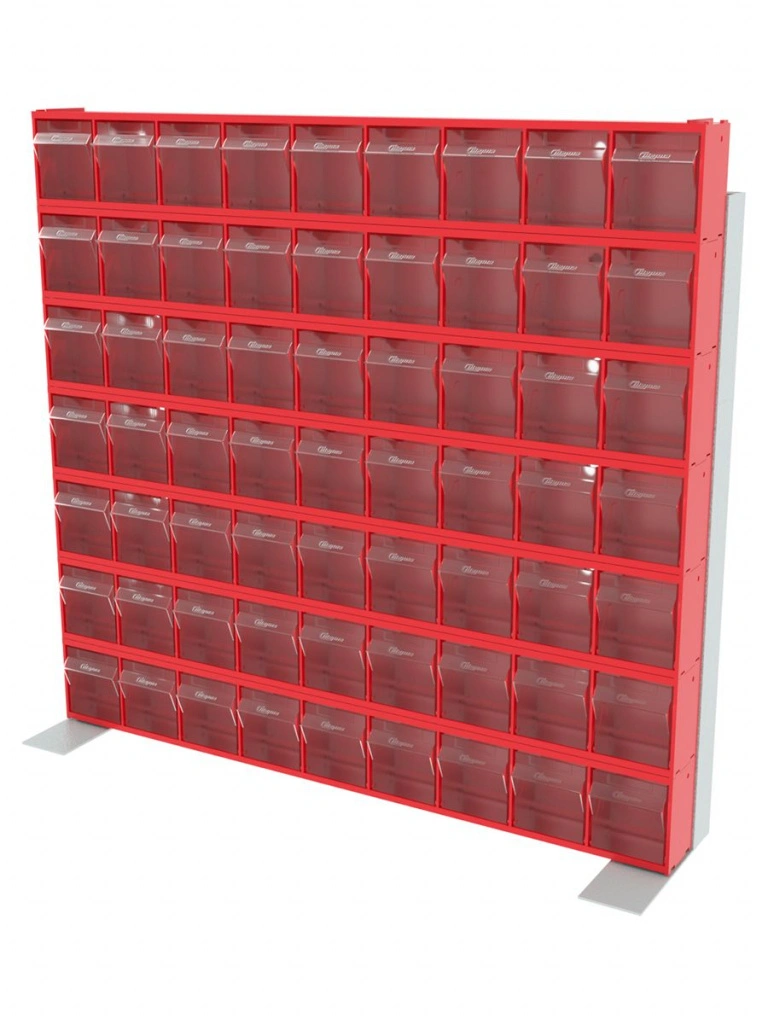 Стойка настенная/настольная Стелла-техник 401-07-00-00 (610х150х500) представляет собой удобную систему хранения, которая подойдет для выставочных залов, магазинов, офисов, складов. Основание можно установить на стол или закрепить на стену, привернув его анкерными болтами или саморезами (в комплект не входят). В комплект стойки входит: Рама FOX (610х150х500) V401 - 1 шт.; Короб откидной Стелла-техник F-600-9 , 600х68х78мм, 9 ячеек, красный, прозрачный - 7 шт.; Упаковка. Преимущества стойки: Металлическое основание; Значительная устойчивость; Хорошая вместимость; Длительный срок службы.